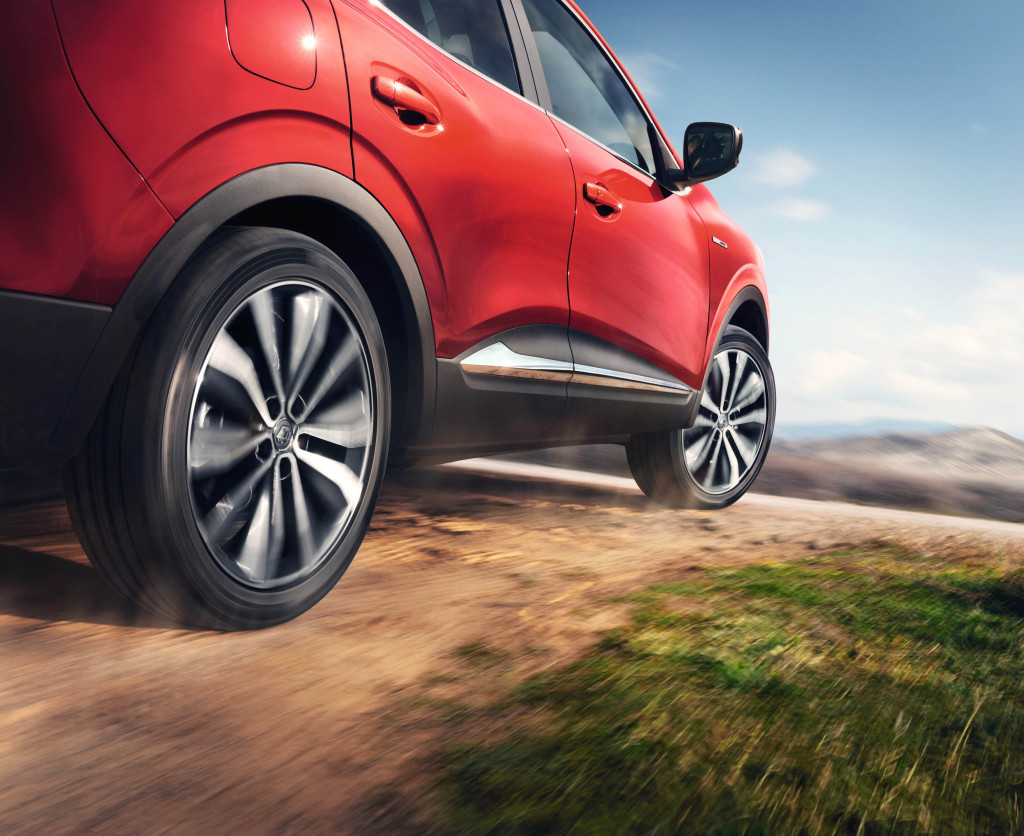 De robuuste bouw van de Renault Kadjar is geïnspireerd op dat van SUV’s. Met de optionele Four-Wheel Drive vierwielaandrijving biedt hij optimale grip in alle situaties. De bestuurder kan bovendien kiezen uit drie rijmodi (2WD, 4WD Auto en 4WD Lock).