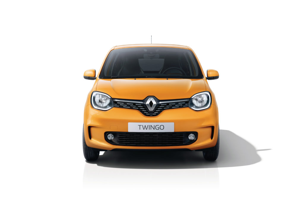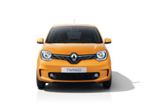De Twingo valt op door het vernieuwde front met een nieuw ontworpen bumper, nieuwe koplampen met geïntegreerde LED-dagrijverlichting en een groter frontoppervlak in carrosseriekleur. Ook wordt de visuele breedte versterkt door de horizontale lijnen van de onderste grille en de sleuven op de hoeken van de voorbumper. De topversie wordt gekenmerkt door verchroomde details in de voorgrille.