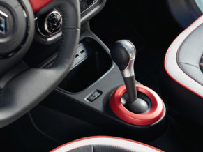 De Twingo is binnenin te herkennen aan de vernieuwde, multifunctionele middenconsole met een verstelbare bekerhouder, waarin je bijvoorbeeld ook een smartphone rechtop kunt zetten. Hier zijn ook twee USB-poorten te vinden, evenals een AUX-ingang en de knoppen van het start-stopsysteem en de cruise control/snelheidsbegrenzer.