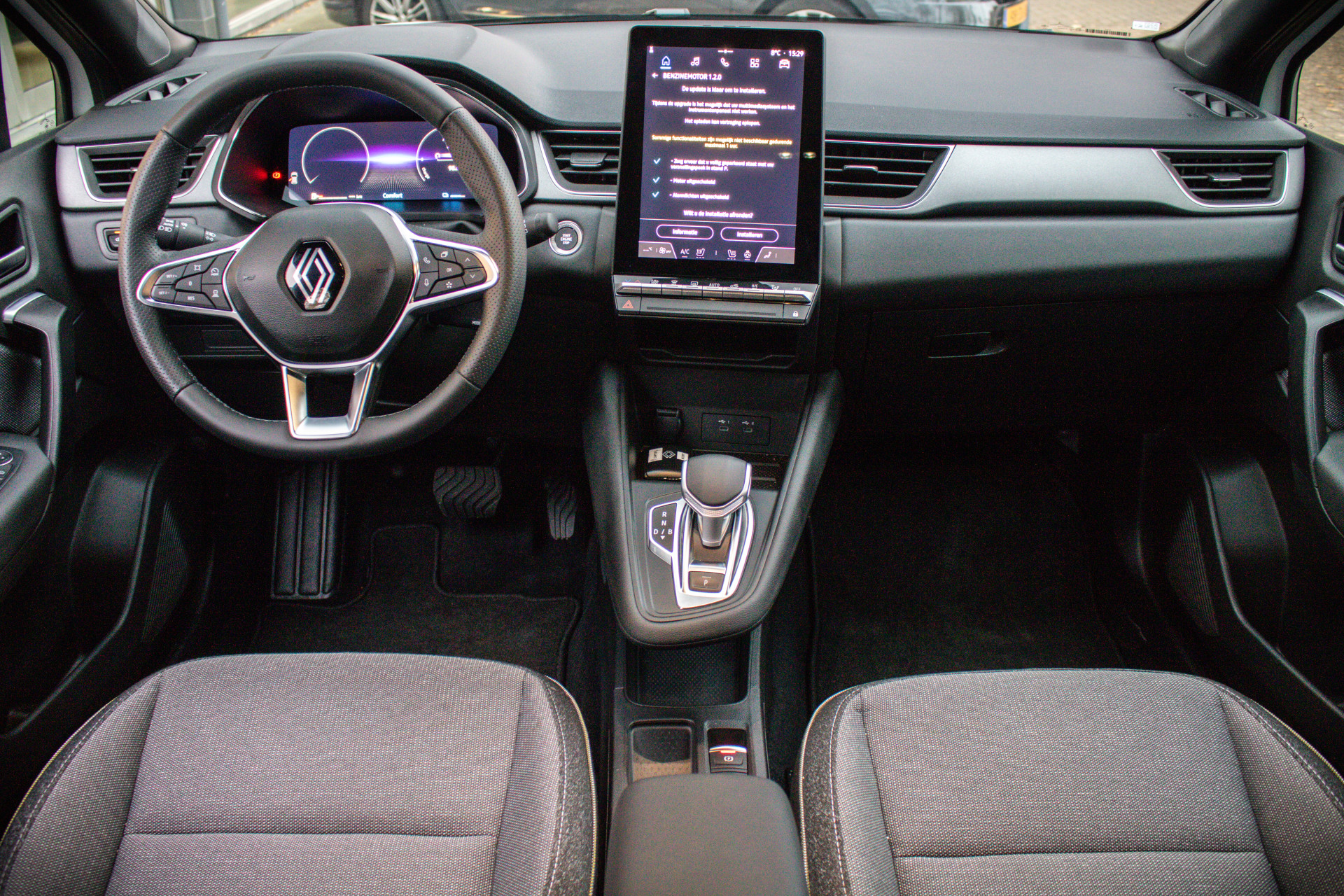 Dankzij de geavanceerde hybride aandrijflijn rijdt u soepel en stil, met het lage brandstofverbruik van een hybride en zonder dat u hoeft te denken aan stekkers of laadpalen. De Captur laadt zichzelf op tijdens het rijden. Binnenin geniet u van het moderne interieur en het hoge comfortniveau dat de techno uitvoering kenmerkt. Zo beschikt deze Captur onder andere over adaptieve cruise control, stoel- en stuurverwarming en een dodehoekwaarschuwing. Ook een praktisch reservewiel is aanwezig – iets wat tegenwoordig niet meer vanzelfsprekend is.
