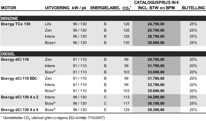 De prijzen van de dieselversies beginnen bij € 29.790,- voor de Kadjar Energy dCi 110 in de uitvoering Zen. Deze motor wordt geleverd met een handgeschakelde zesversnellingsbak of met een automatische EDC-zesversnellingsbak met dubbele koppeling. Alle Energy dCi 110 uitvoeringen dragen het energielabel B en vallen bovendien in de zakelijk interessante bijtellingscategorie van 20%.