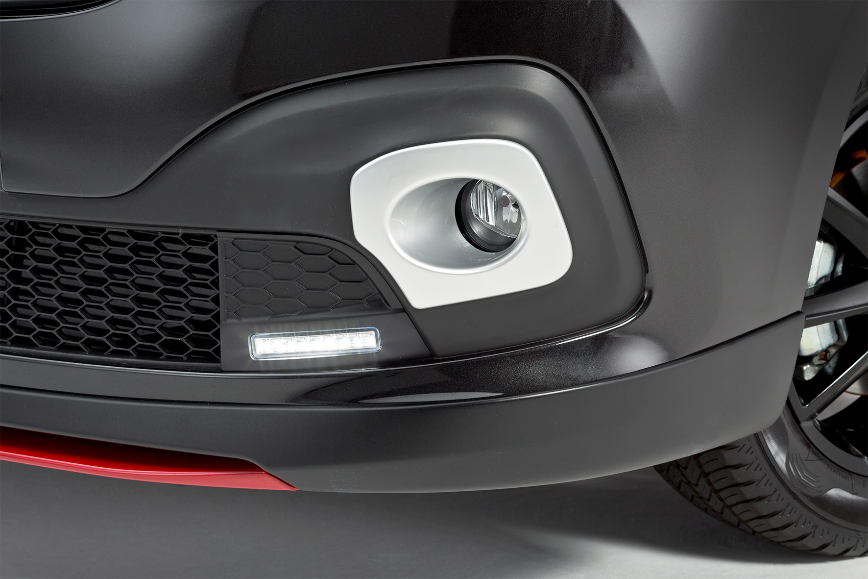 De Renault Trafic Formula Edition is een bijzondere verschijning. Hij is direct te herkennen aan de hoogglans rode voorspoiler en de rood-blauwe striping op de motorkap en langs de zijkant. De sportieve uitstraling wordt versterkt door de LED-dagrijverlichting, zilverkleurige inlays rondom de mistlampen en 17-inch lichtmetalen wielen in hoogglans zwart.