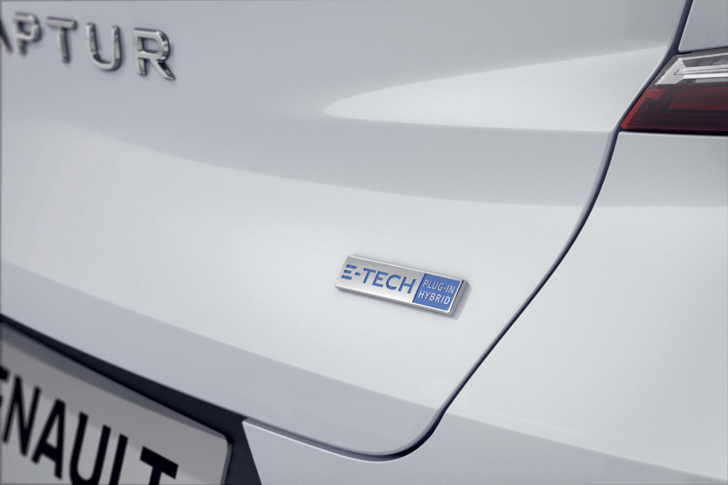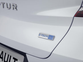 De E-TECH Plug-in uitvoering van de CAPTUR is te herkennen aan de E-TECH logo’s op de B-stijl en de kofferklep. De tankklep zit aan de linkerkant van de auto en de laadaansluiting rechts. Bij een aangesloten laadkabel geven verschillende kleuren informatie over de laadstatus: blauw (batterij wordt geladen), groen (batterij is volgeladen), oranje (wachtend), rood (batterij wordt niet geladen).