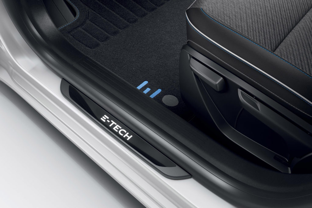 Verder is de transmissiehendel voorzien van een ‘E-TECH’ logo en de schakelaar van het start-stopsysteem vervangen door een EV-knop waarmee de volledig elektrische rijmodus kan worden ingeschakeld (bij voldoende batterijlading).