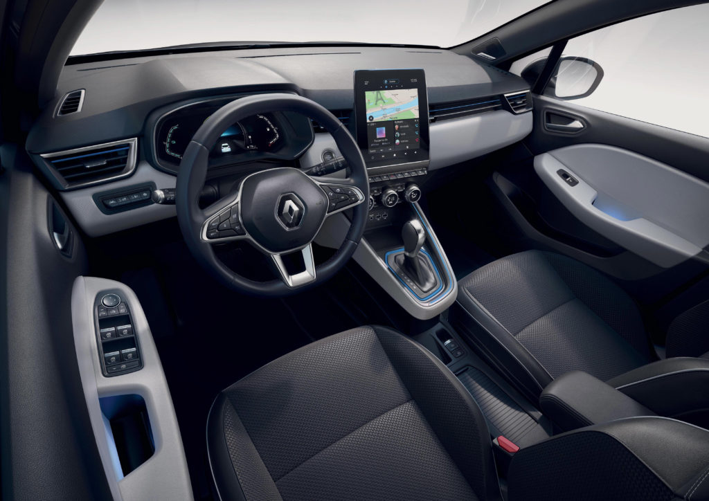 Het interieur wordt gekenmerkt door de ‘Smart Cockpit’ met een 7” TFT-instrumentencluster en het nieuwe Renault EASY LINK infotainmentscherm met een 7” (horizontaal) of 9,3” (verticaal) beeldscherm. Op de digitale schermen zijn bovendien afbeeldingen en animaties te zien die specifiek voor de hybrideversie ontwikkeld zijn, zoals de laadstatus van de batterij tijdens rijden of opladen.